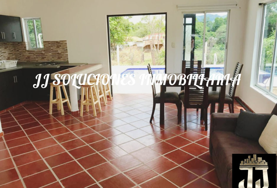 Hermosa Casa Lote de 97 M2 de área construida y 230 de área total, en conjunto cerrado con 3 habitaciones, 3 baños, sala, comedor, cocina abierta, piscina privada, cuarto de máquinas y parqueadero para 2 vehículos, conjunto de 30 lotes de los cuales hay 14 casas construidas, iluminación, portón, zonas verdes, a 100 metros de la carretera principal de tocaima a Girardot.